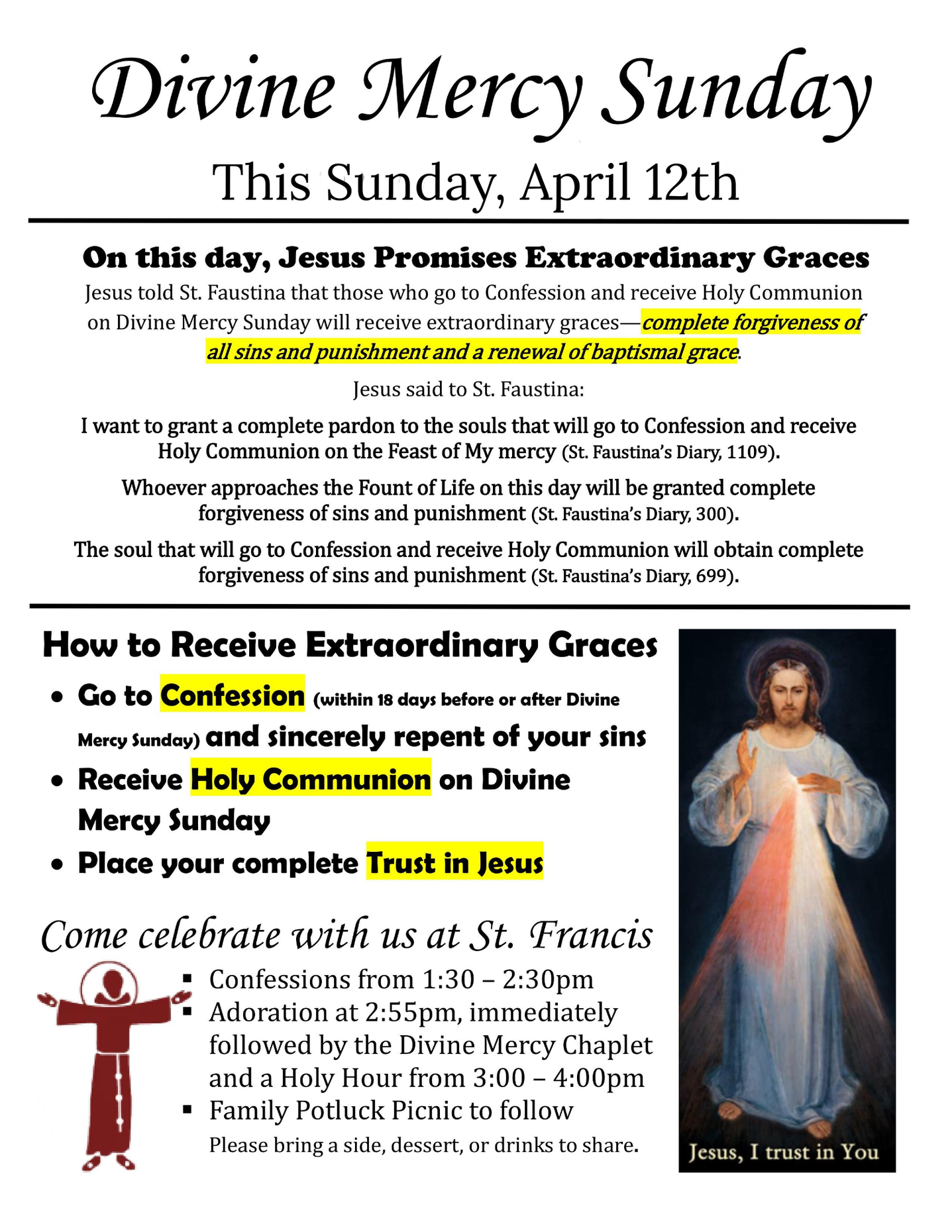 At St. Francis of Assisi, our parish bulletins are your go-to source for the latest news, events, and inspiration. Each week, we share important updates, spiritual reflections, and opportunities to connect with our vibrant community. Stay informed and engaged with us!