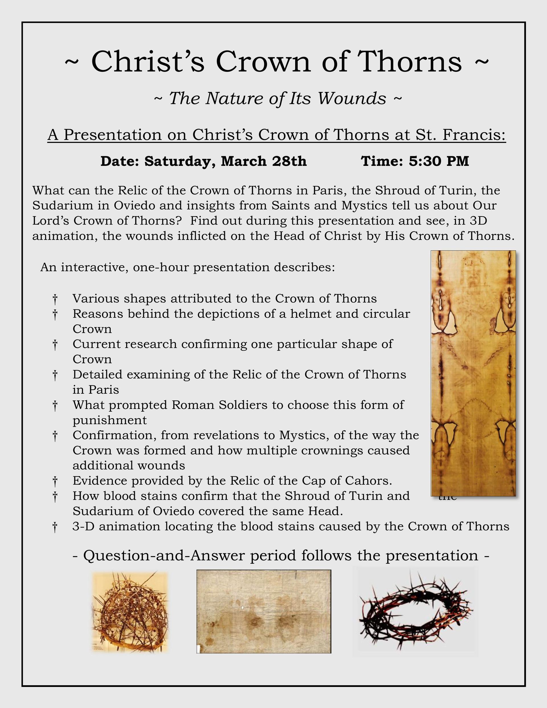First Saturday: After 9:00 AM Mass to 3:00 PM